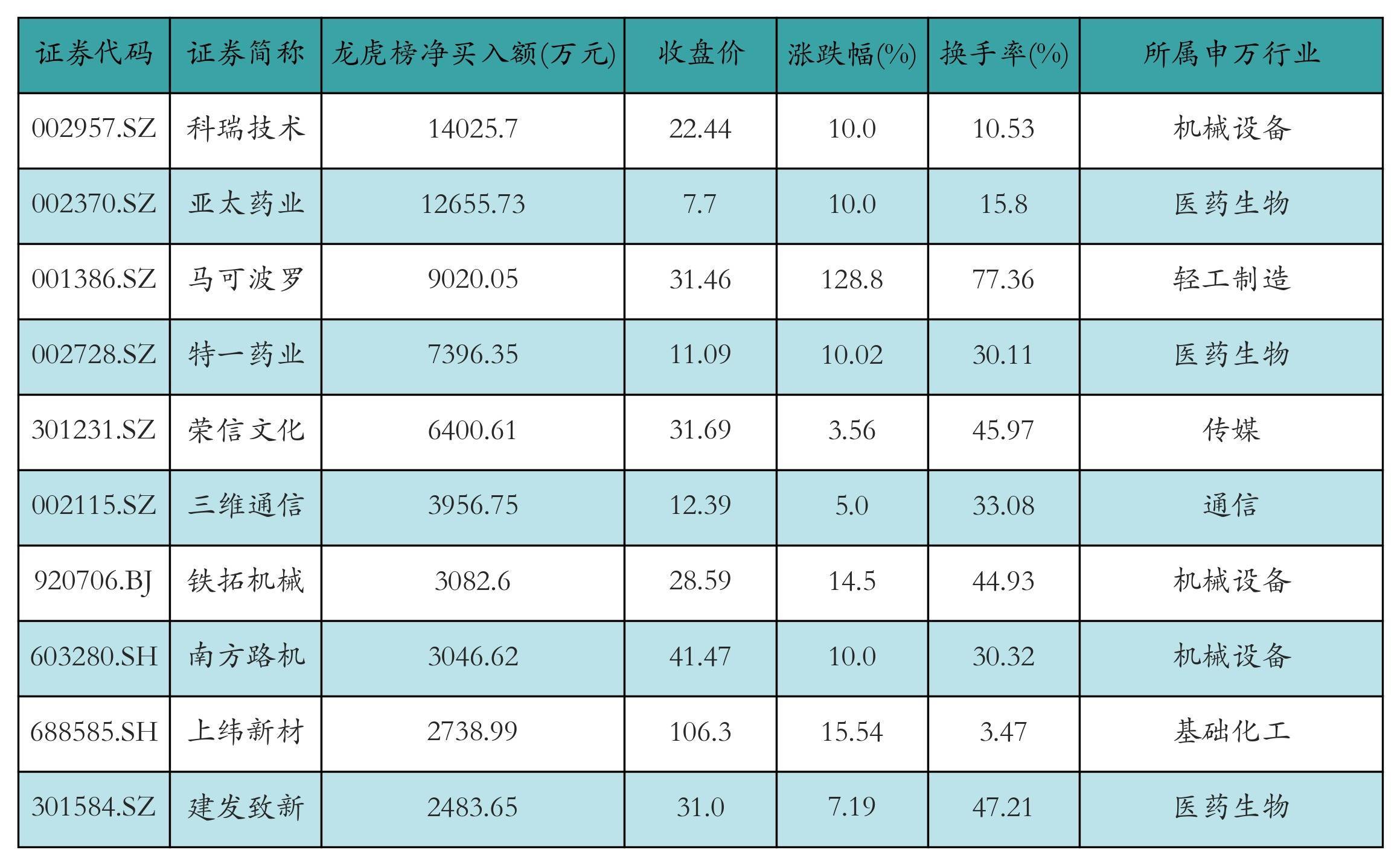昨日龙虎榜营业部净买入额前10详情见下表:
